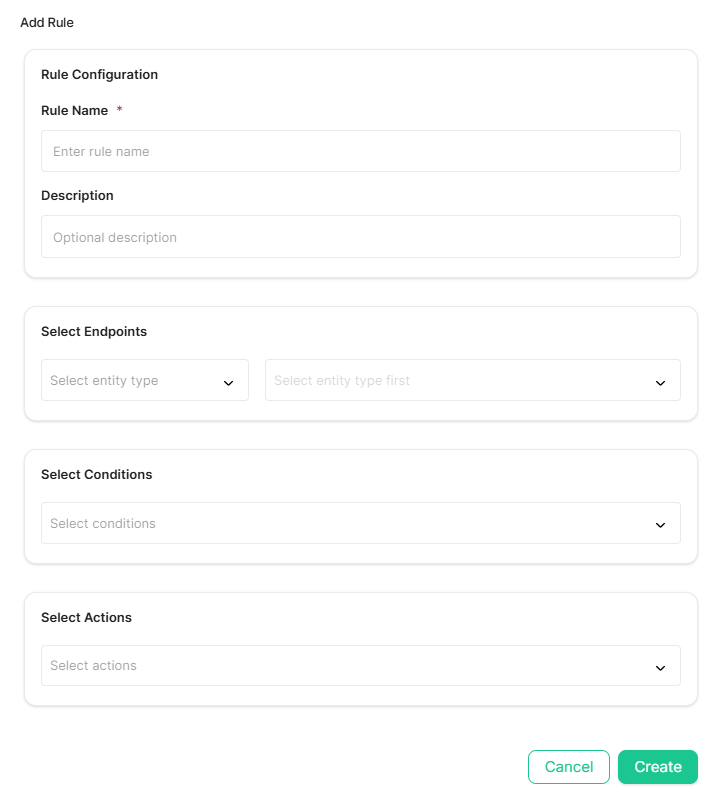 Select API ID - After choosing an entity type, this dropdown shows all available APIs for that entity. You can add multiple endpoints to one rule.